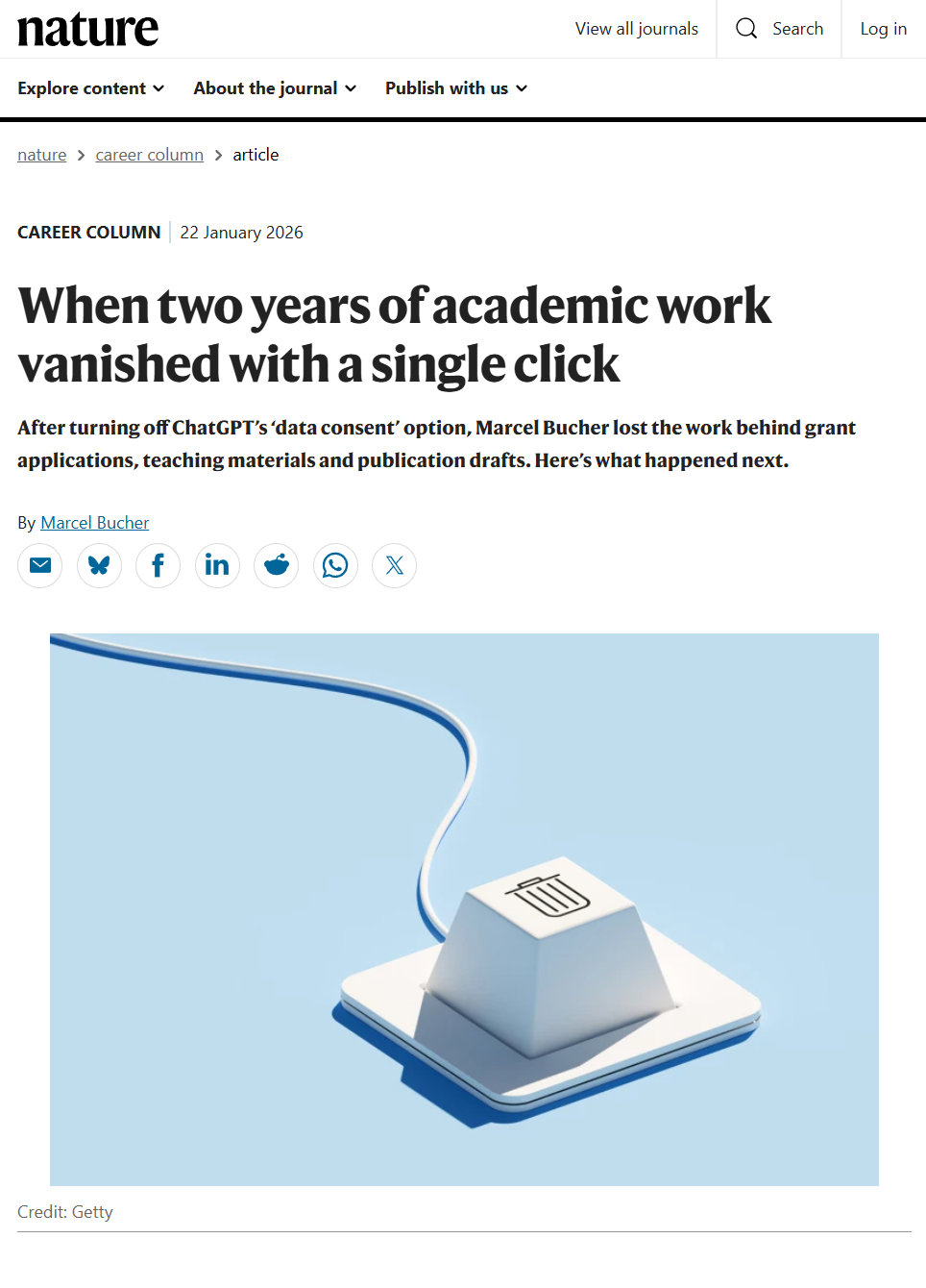 This was not a case of losing random notes or idle chats. Among my discussions with ChatGPT were project folders containing multiple conversations that I had used to develop grant applications, prepare teaching materials, refine publication drafts and design exam analyses. This was intellectual scaffolding that had been built up over a two-year period.